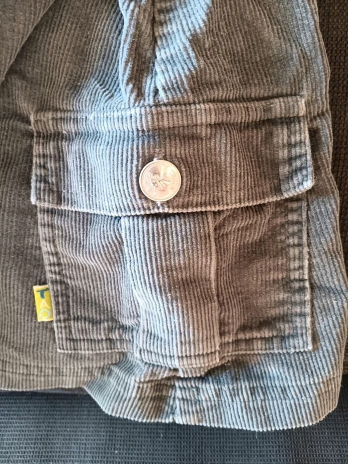 Robe velours cotelé grise, 24/36 mois, 2 ans, avec boutons en haut des bretelles pour faciliter l enfilage et deux poches latérales. Tao.
