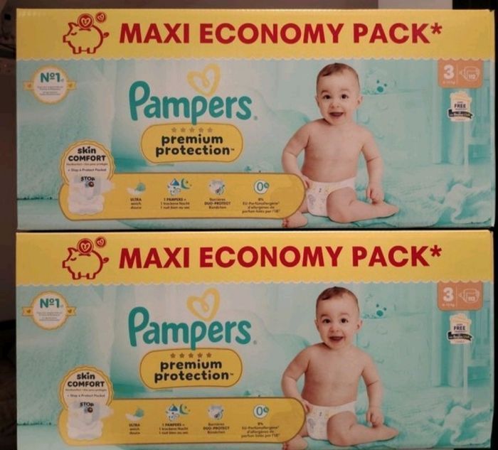 Lot de deux maxi packs Pampers premium protection taille 3 neufs Envoi par mondial relay !! Merci Envoi en 24h sauf lundi