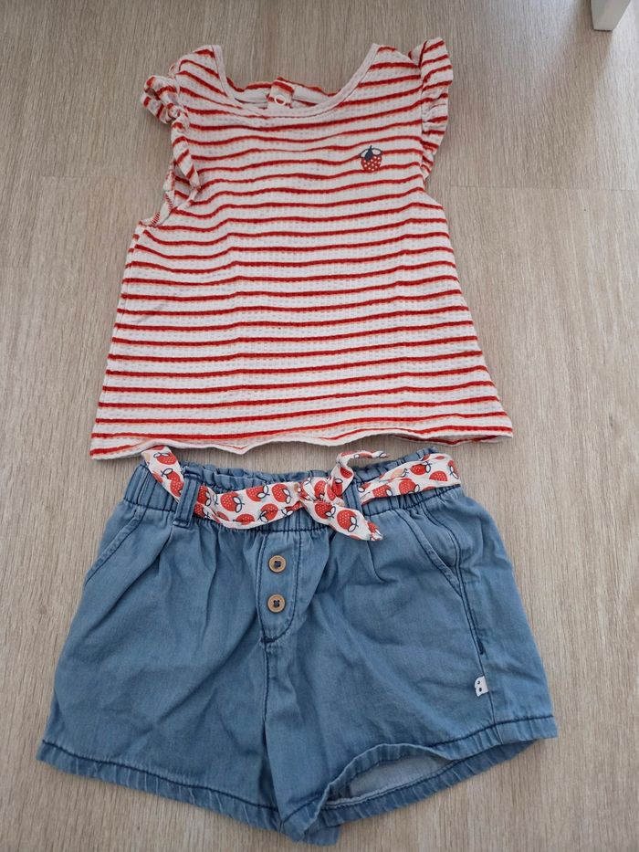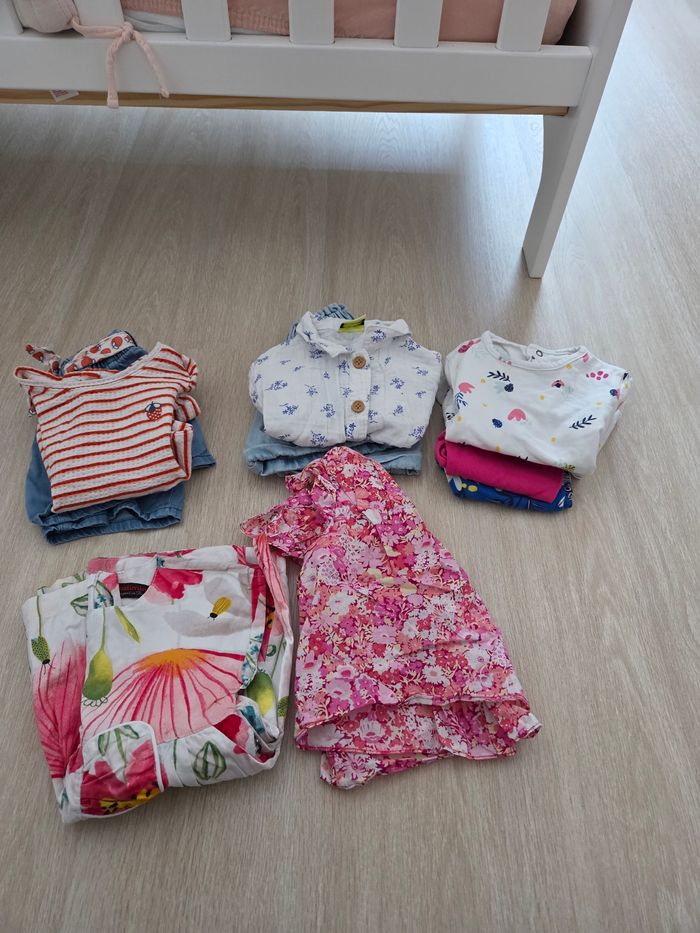 Lot de 9 pièces printemps/été 12 mois / 74 cms ,composé de : - ensemble short jean/ t short rayé rouge et blanc marque obaibi (parfait état) - ensemble short jean et chemise fleurie marque tape a l'œil (parfait état) - ensemble t shirt manches longues et 2 leggings marque catimini ( neuf sans étiquette, jamais porté) - robe catimini ( neuve sans étiquette jamais portée) - chemise fleurie Jacadi ( neuve sans étiquette, jamais portée) Envoi sous 24h
