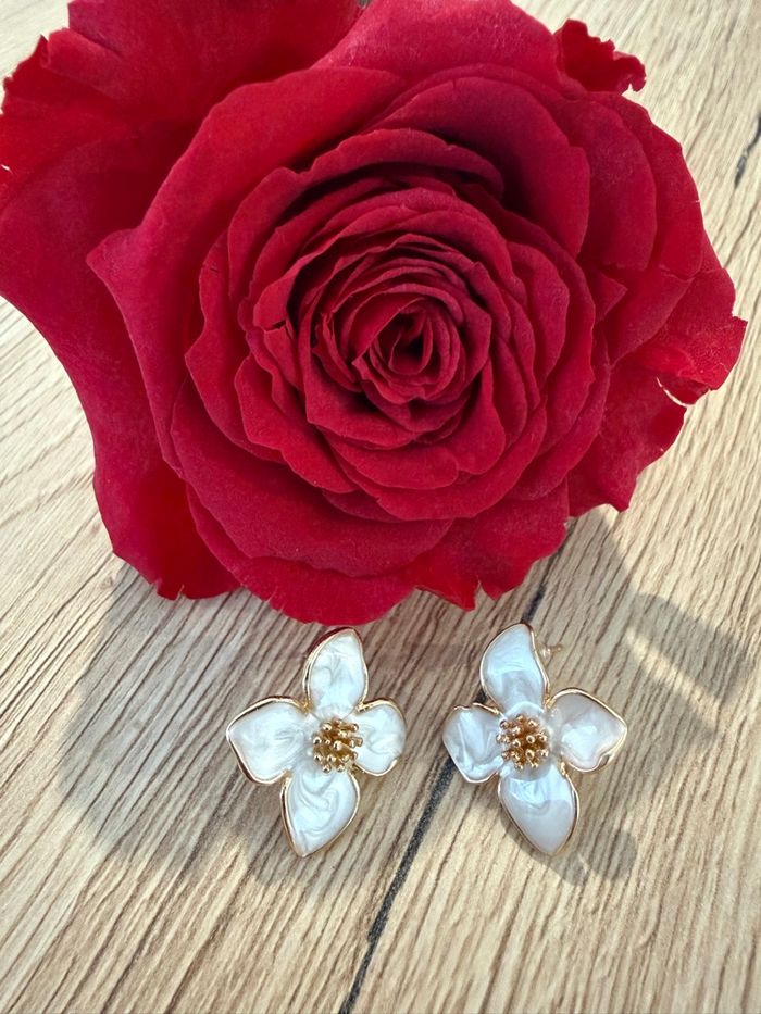 Boucles d’oreilles dorées avec fleurs navrées en alliage de zinc