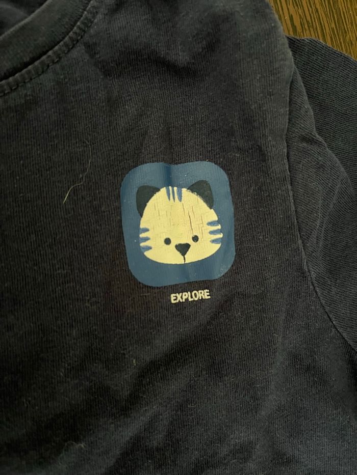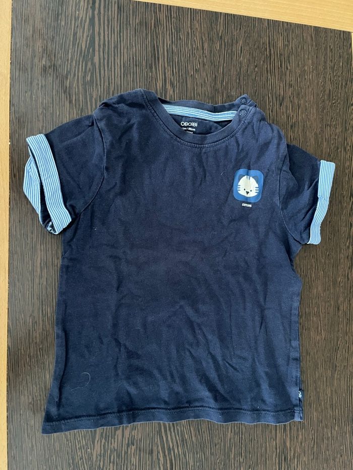 Lot garçon en 24mois T-shirt obaibi 23mois ( usures normal voir photo) Pantalon de chez gemo en 24mois ( usures, trou au niveau de l’ourlet pied droit, voir photo) Possibilité de mixer les lots. N’hésitez pas à me demander !