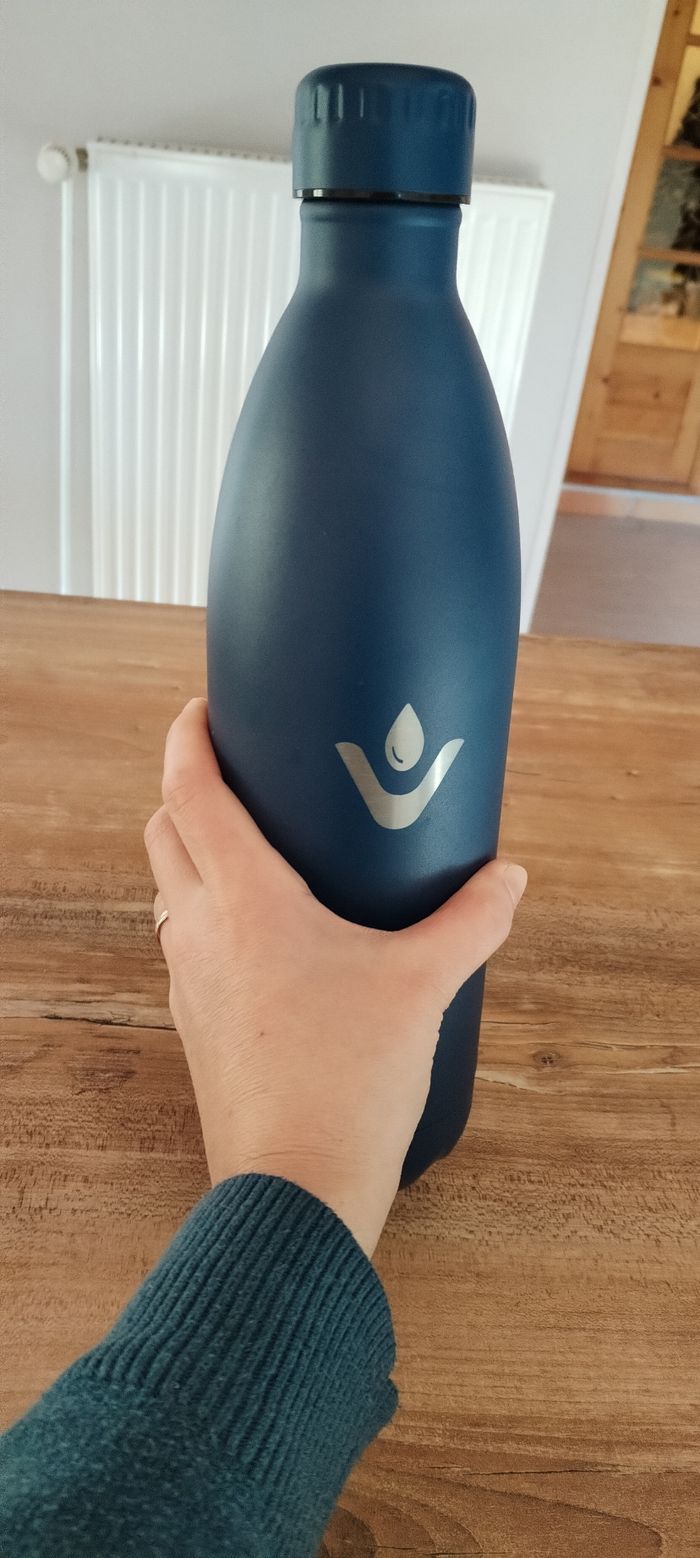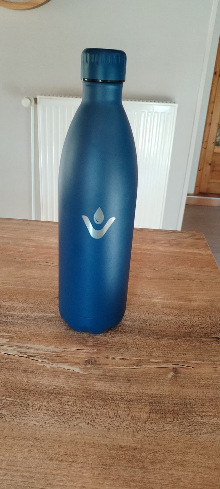 Bleu foncé. Inox 1L. Neuve juste rincée, jamais utilisé. Acheter sur Amazon. Prix actuel sur le site 20€ .
