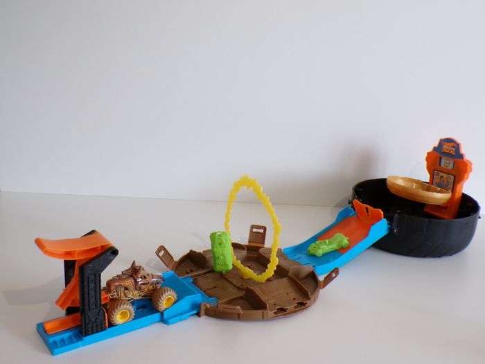 Circuit Monster trucks Hot wheeels en super bon état complet et fonctionne parfaitement. Le Monster truck Horse Power, est en bon état, mais à perdu sa queue lors d'une course folle! Se déplie et replie très facilement, idéal pour transporter ou l'on veux. D'autres photo sont disponibles car limité sur le site... Mon dressing est trié par catégories, tailles et saisons pour les vêtements. Cliquez sur mes liens # qui sont dans l'annonce. #sonia222404 #jouetenfantsonia222404 #hotwheelsjamsonia222404