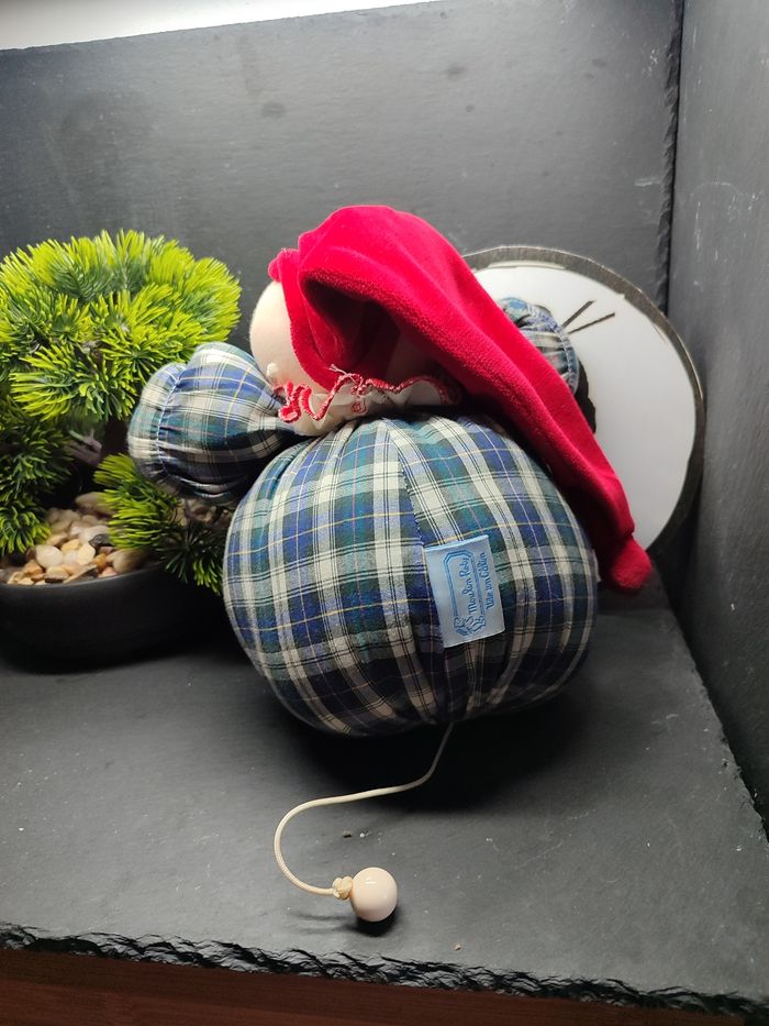 remise en main propre possible : Vertou (44) Référence : PE0308 #geektrademoulinroty Bon état Grelot dans le bonnet ok La boîte à musique est HS . La ficelle reste sortie . Aucune musique Le logo en arrière plan fait 20 cm de diamètre Afin de ne pas abîmer les doudous et de laisser le choix dans l'utilisation de la lessive les peluches ne sont pas lavées avant envoi Description complément : Petit nettoyage à prévoir Vous achetez ce que vous voyez les photos font entièrement partie de la description Transport : Les frais de transport comprennent les frais du transporteur ainsi que l'emballage pour protéger au mieux votre achat. Chaque achat est envoyé en format colis avec numéro de suivi Le poids du colis est de 500g finit (je ne peux pas faire moins) il peut donc y avoir plusieurs objets dans le carton si vous le souhaitez (contactez moi afinde grouper les frais de port) Référencement : #geektradedoudou #peluche #plush  #doudou #enfant #bebe #knuffel #comforter #felpa #Plüsch #doudou #comforter #schnuffeltuch #kuscheltuch #knuffeldoekje #mantita #naninha #copertina #peluche #plush #stuffedanimal #kuscheltier #knuffel #bichinhodepelúcia #nostalgie #nostalgia #vintage