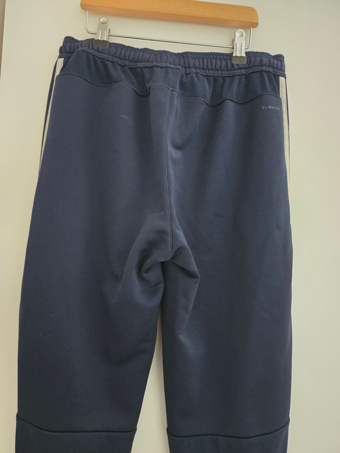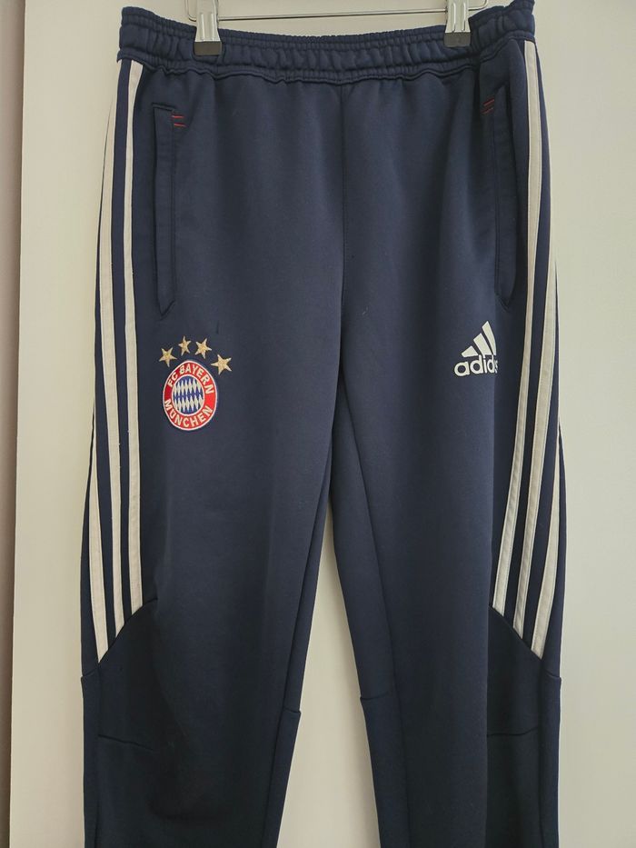 Je vends ce pantalon de sport Adidas aux couleurs du FC Bayern Munich en 13/14 ans, parfait pour un jeune sportif qui aime le football et le style décontracté. - Type de produit : Pantalon de sport - Marque : Adidas - Univers : Enfant - Taille : 14 ans / 164 cm - Couleur : Bleu marine - Caractéristiques : Bandes latérales blanches Adidas, Logo FC Bayern Munich brodé, Poches latérales, Ceinture élastiquée N'hésitez pas à me contacter pour plus d'informations ou de photos.