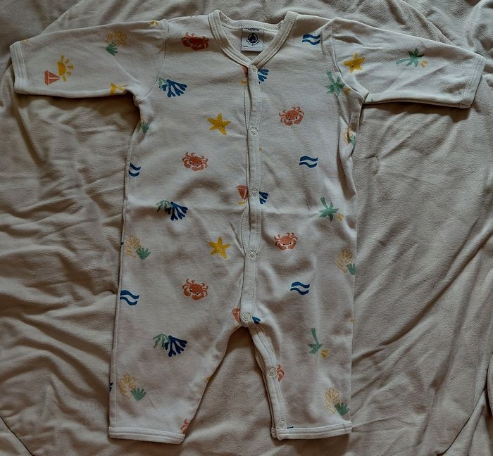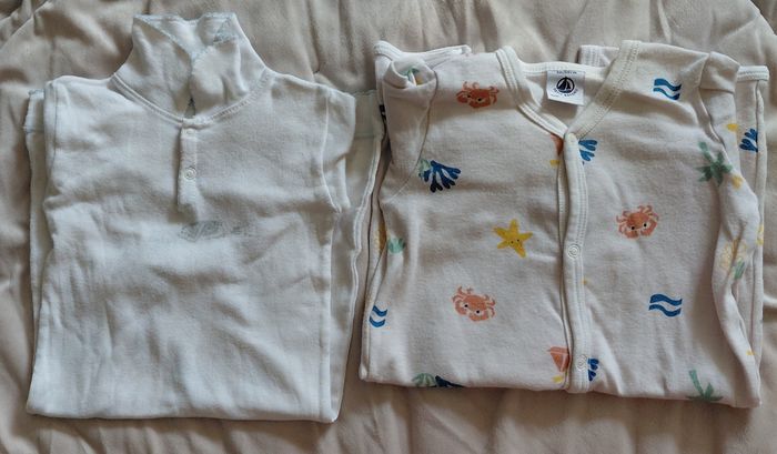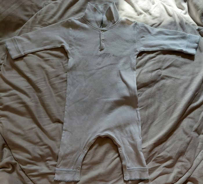 2 pyjamas 1 pièce manches longues léger garçon 3 mois bon état avec de 3 légère imperfections (1 légère taches, coutures un peu abîmé. Voir photos). -Type de produit : Pyjamas -Univers : garçon -Taille : 3 mois / 60 cm -Marque(s) : petit bateau -Couleur(s) : blanc Réductions de lots activé, jusqu'à-50%. A partir de 15€, prix négociable dans la limite du raisonnable. Envoie rapide dans les 24h ➡️ 📦