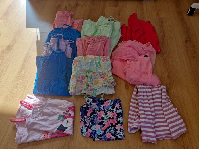 Vends robe à petite bretelle,2 robes à manches et 3 robes de plage avec stech 1 rose et 1 à fleur. Très peu mise.