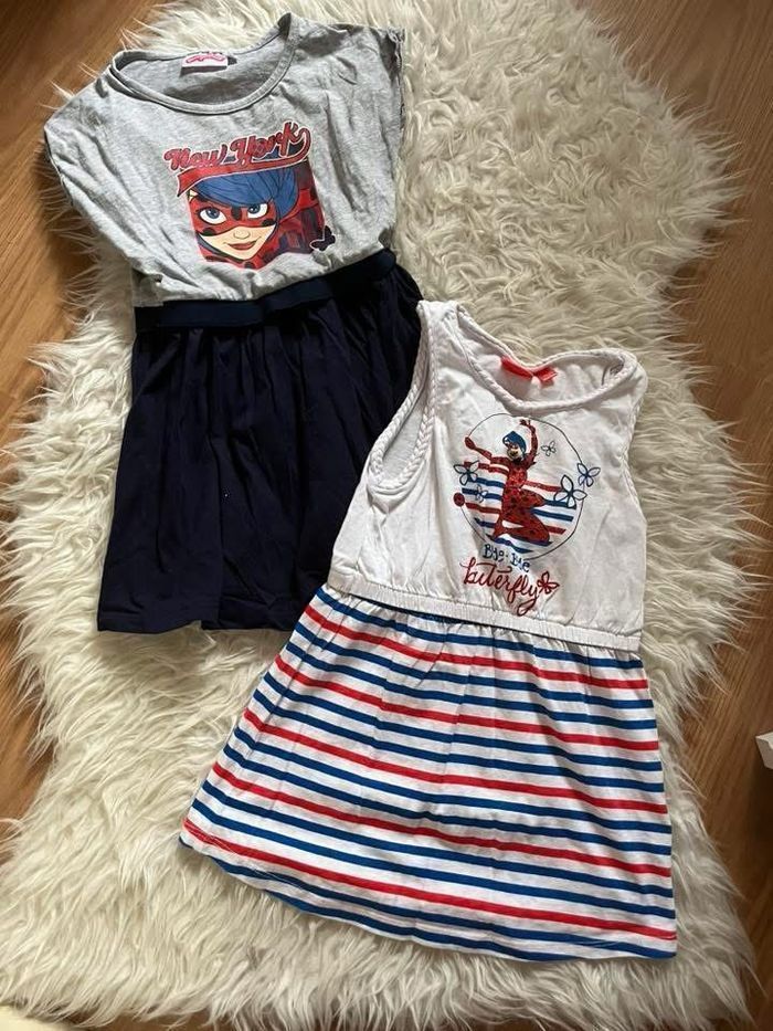 〰️ Lot vêtements fille été comprenant : - une robe manches courtes, miraculous TBE - une robe sans manches, miraculous TBE - une Combishort sans manches, ariel la petite sirène TBE - une robe à bretelles stella paw patrol TBE - une robe manches courtes marinière bien portée - une 2ème Combishort sans manches ariel la petite sirène TBE - un legging court violet neuf - un top jaune ajouré à bretelles TBE - une Combishort jaune motifs fruits sans manches neuve 🏷️ Réductions sur les lots activées ⏳ Pas de réservation ✂️ Les colis sont emballés soigneusement 🎁 Un petit cadeau sera mis dans chaque colis #virginie63zfille #virginie63z4ans #virginie63z5ans