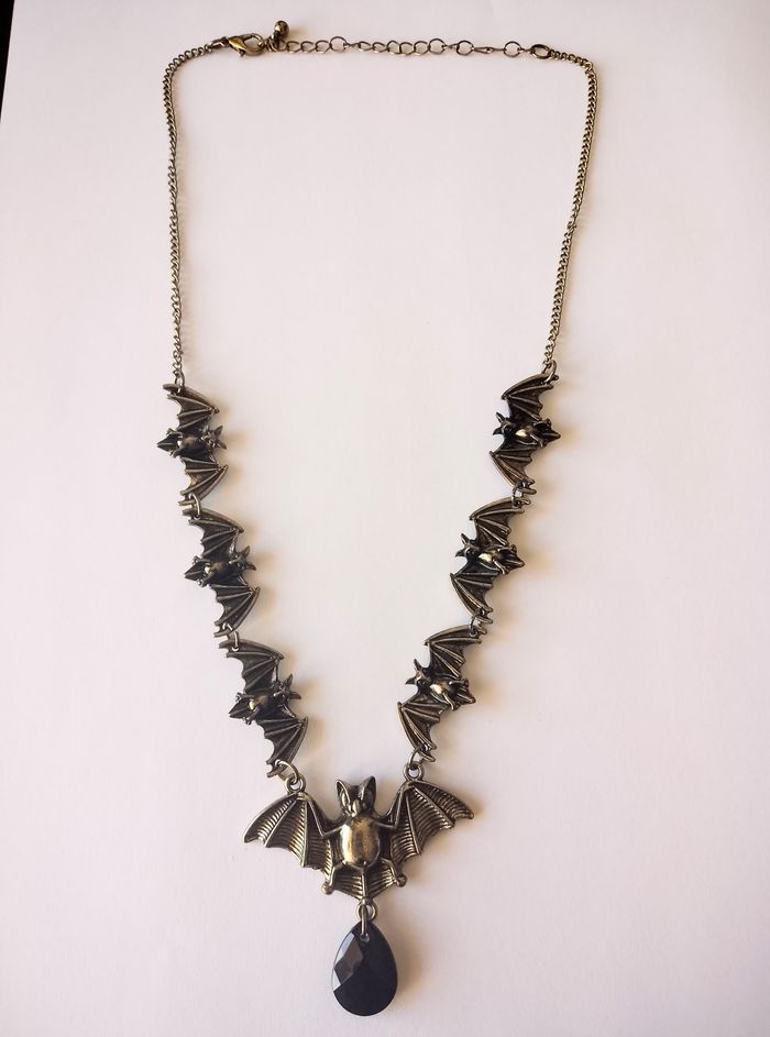 Chaîne + pendentif gothique. Pendentif : chauve-souris. (gothique, celtique, spirituel, élégant, idéal cadeau) DESCRIPTIF : Couleur : or antique, noir. Taille chaîne : 45 cm + 5 cm Diamètre pendentif : 5 cm L * 4,5 cm H Envoi rapide et soigné.