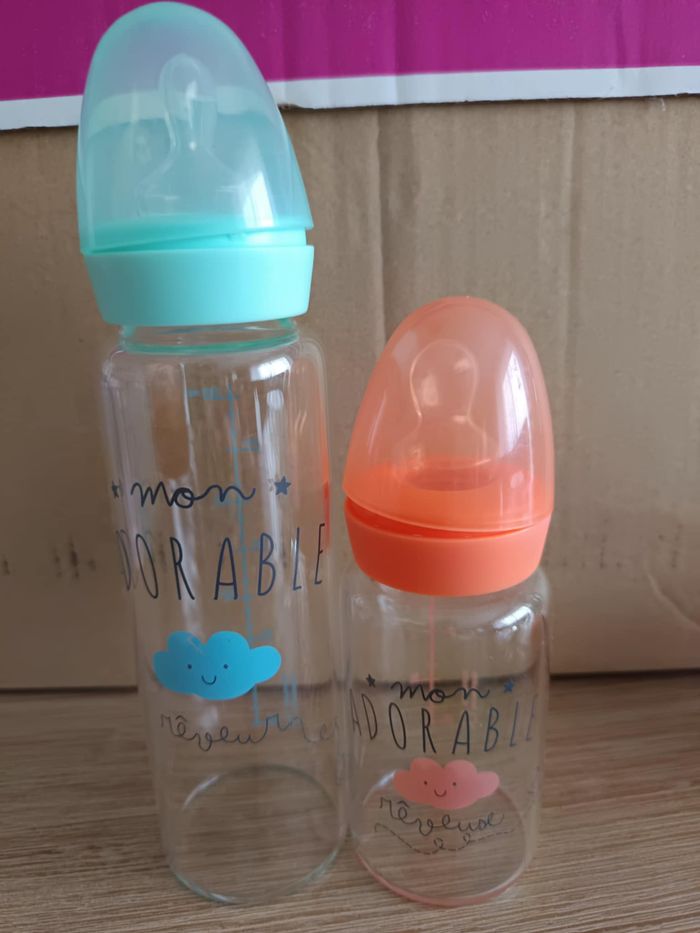 lot de 2 biberons en verre 1 de 240ml, 1 de 120ml. #biberonsbébé