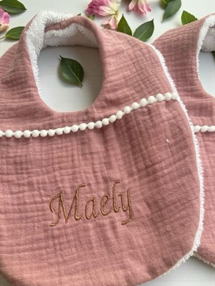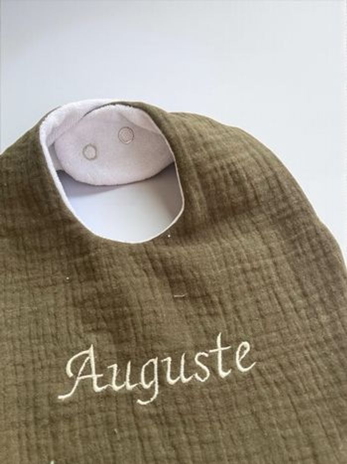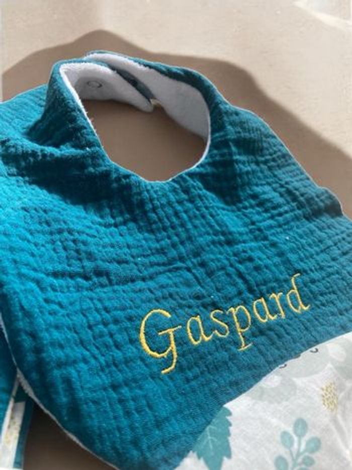 Bavoir personnalisable – Doux pratique et épais. Les bavoirs sont entièrement conçus en tissus certifiés Oeko-Tex, sans substances nocives. • Matière : double gaze de coton, et tissu éponge douce et absorbante • Personnalisation : broderie du prénom • Large choix de couleurs : • Tissu uni : 21 couleurs • Broderie : plus de 80 couleurs dont 10 pailletés. Pratiques, jolis et uniques, ces bavoirs sont parfaits pour les repas de bébé ou comme cadeau personnalisé.