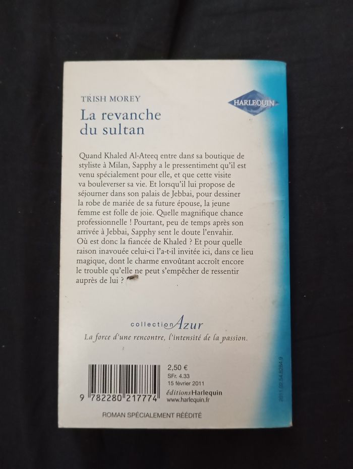 Je vends le roman "La revanche du sultan" de Trish Morey, un roman captivant de la collection Azur qui ravira les amateurs de littérature romantique. - Titre : La revanche du sultan - Auteur : Trish Morey - Genre : Roman - Éditeur : Harlequin - Collection : Azur - Format : Poche - Langue : Français - Année d'édition : 2011 - ISBN : 9782280217776 Bon état N'hésitez pas à me contacter pour plus d'informations ou pour convenir d'une visite.