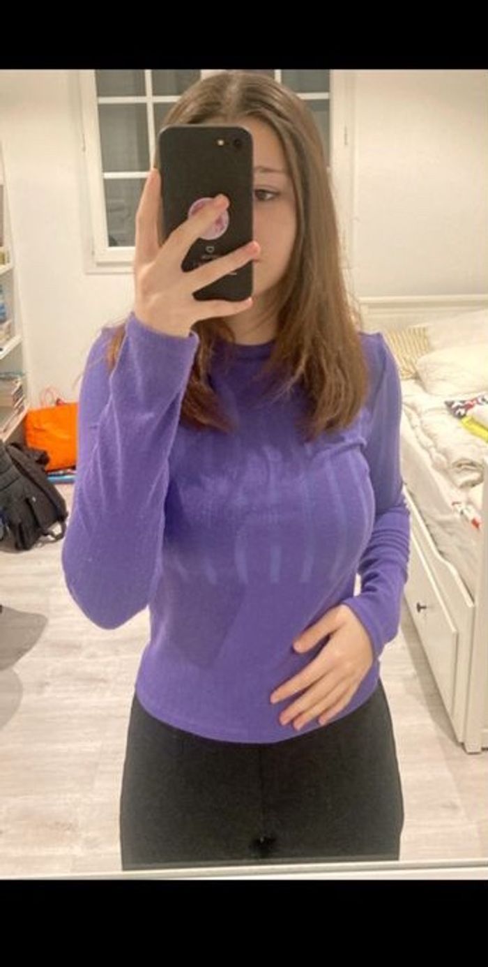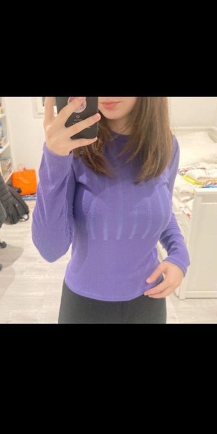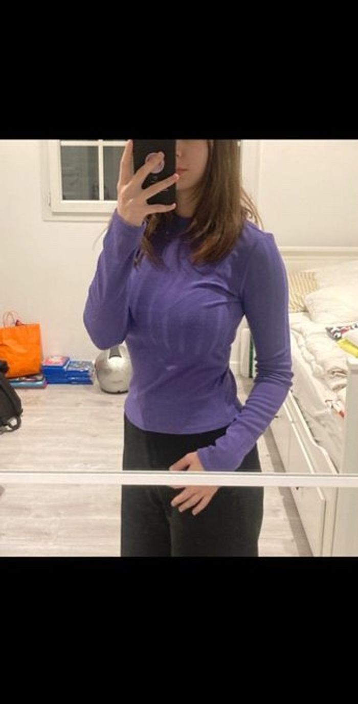 Haut à manches longues violet, porté rarement. Taille S. Élastique.
