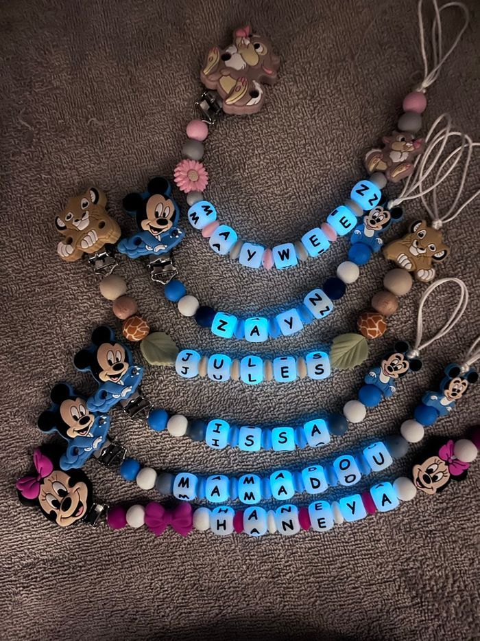 Pour passer la commande il suffit de valider le paiement sur l'annonce du modele désiré et de m'envoyez le prénom de l'enfant par message que je puisse réaliser votre commande. A partir de 2 articles vous bénéficiez de 5% de réduction. Réalisation dans la journée l'adaptateur tétine mam et en supplément à 1€ Si vous souhaitez quelque chose en particulier n’hésitez pas à m’envoyer un message qu’on voit ça ensemble 🥰 Une photo peut être envoyé avant l’envoi bien sûr ☺️