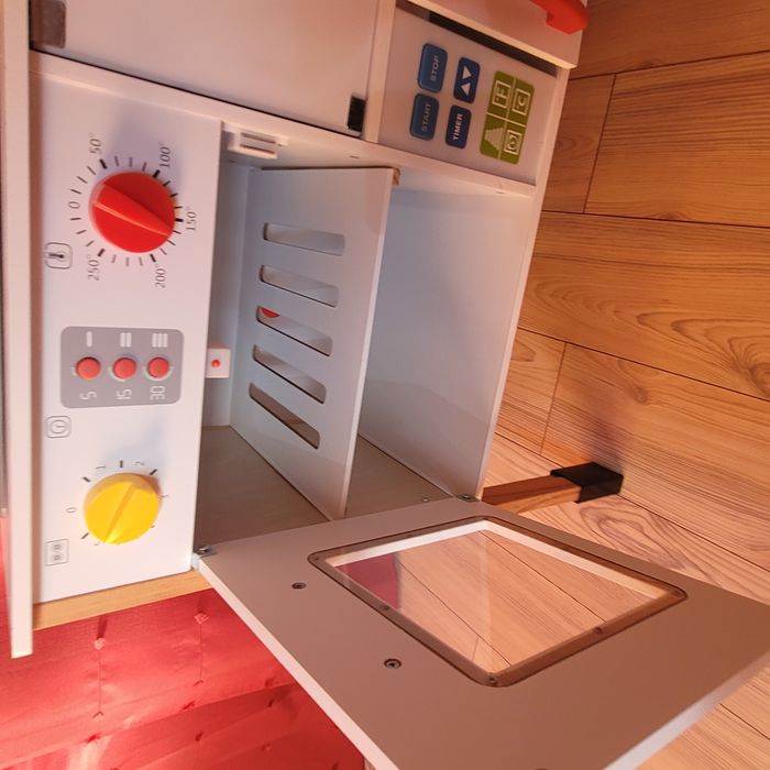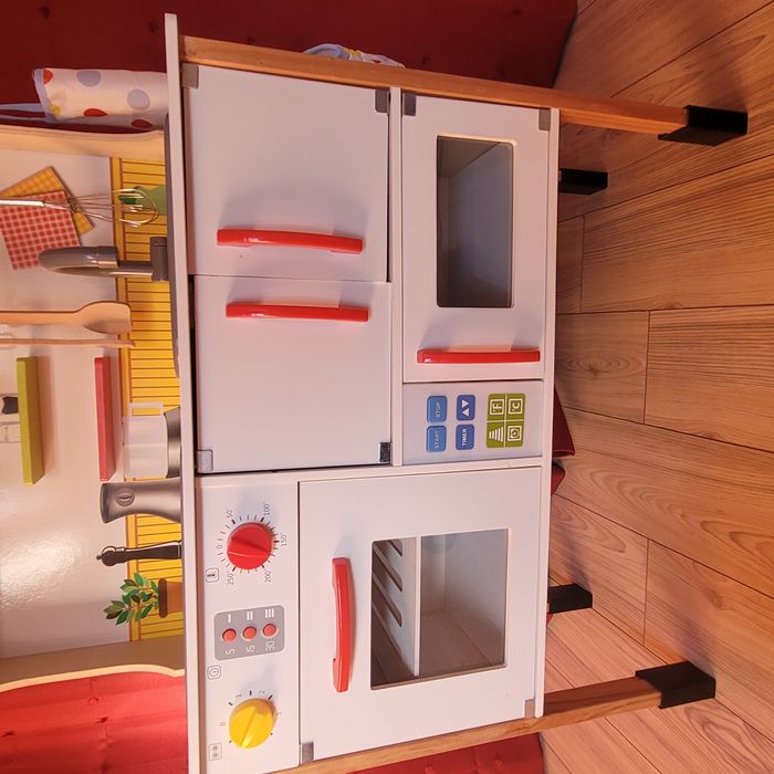 Bonjour tout le monde, Je vends une cuisine en bois Très Bon état général, intérieur impeccable, sans marque Tout fonctionne encore (plaque, micro-ondes et four) Fourni avec le tablier, le gant, le torchon, 2 ustensiles en bois et 1 fouet en acier (je donne avec les deux petits pots et le pot de confiture en bois) A venir chercher sur place Bonne journée