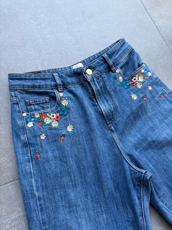 Jean mom stone clair brodé taille 36 Look sympa, très confortable