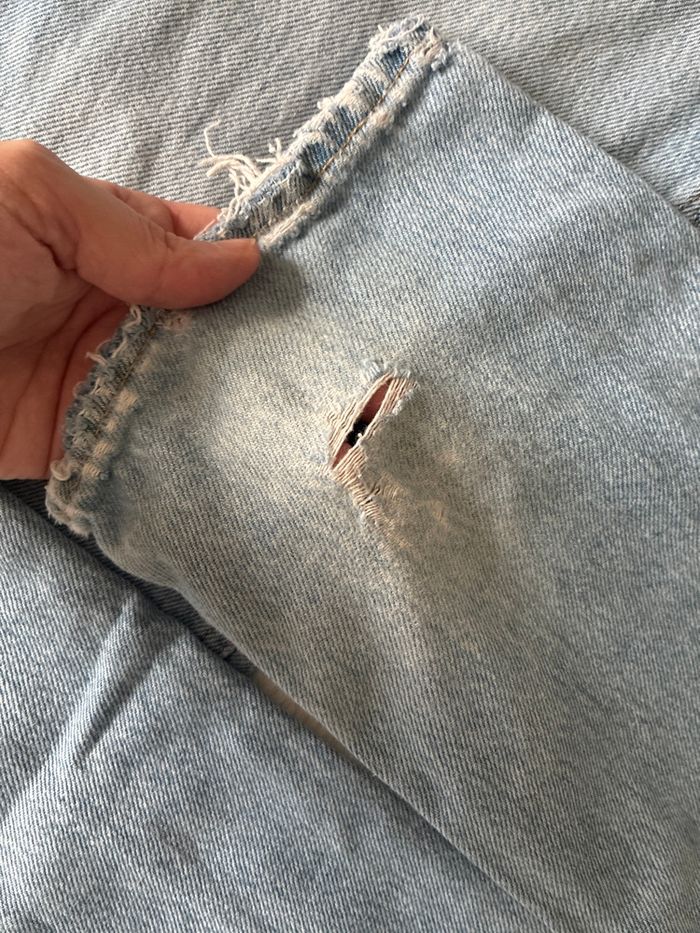 Jean Relaxed Taille 27/32 équivalent à un 36/38 Usé en bas des jambes. Effet Loose