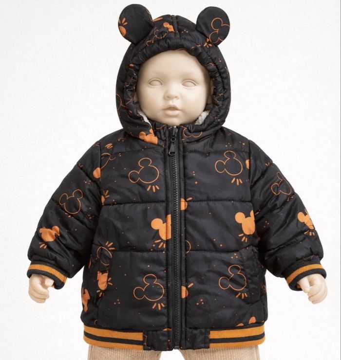 🌟 Adorable veste chaude et doublée polaire, idéale pour l’hiver ! ✨ Détails : • Taille : 9mois • Marque : Disney Mickey Mouse • Couleur : Noir avec motifs Mickey orange • Capuche avec oreilles Mickey • Fermeture éclair + poches • Intérieur doux et chaud en polaire blanche • Poignets et bas de veste élastiqués à rayures 🧼 État : Très bon état, jamais porté , aucun défaut majeur. 💡 Parfaite pour garder bébé bien au chaud cet hiver avec style !