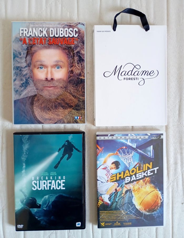 ➡️ Lot de 4 DVD: *DVD Humour Franck Dubosc À l'état sauvage *DVD Humour Florence Foresti Madame Foresti *DVD film Breaking surface *DVD film Shaolin Basket ➡️ Visionné une seule fois chacun #dvd #film #breakingsurface #suspense #plongée #plongeesousmarine #mer #shaolinbasket #basket #kungfu #franckdubosc #humour #franckduboscaletatsauvage #àlétatsauvage #humoristique #sketch #comique #sketchs #spectacle #florenceforesti #florenceforestimadameforesti #madameforesti