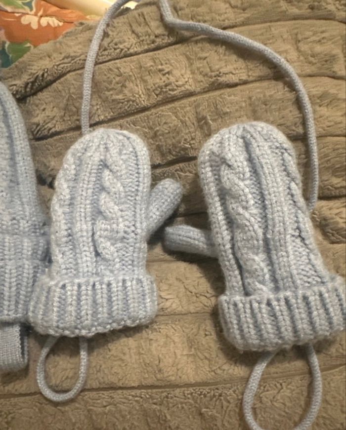 Adorable ensemble d’hiver pour bébé, composé d’un bonnet tricoté bleu ciel avec pompon et d’une paire de moufles assorties, reliées par un cordon pour ne pas les perdre. Tricot torsadé très mignon, chaud et doux, idéal pour les sorties par temps froid. ✔ Taille : 12/18mois ✔ Couleur : Bleu ciel ✔ État : Très bon état, porté très peu ✔ Matière : Maille douce, chaude et confortable ✔ Ensemble assorti parfait pour l’hiver ❄️