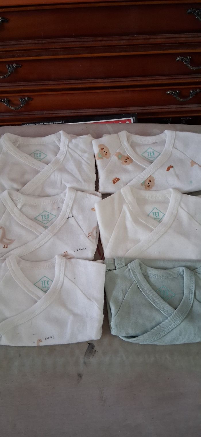Vend lot de 6 bodies manches longue pour garçon, taille 0 mois. Bon état. Porté très peu