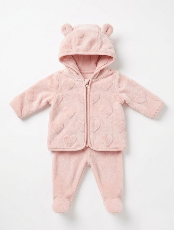 Ensemble bébé fille Rose poudré - Veste à oreilles & Pantalon