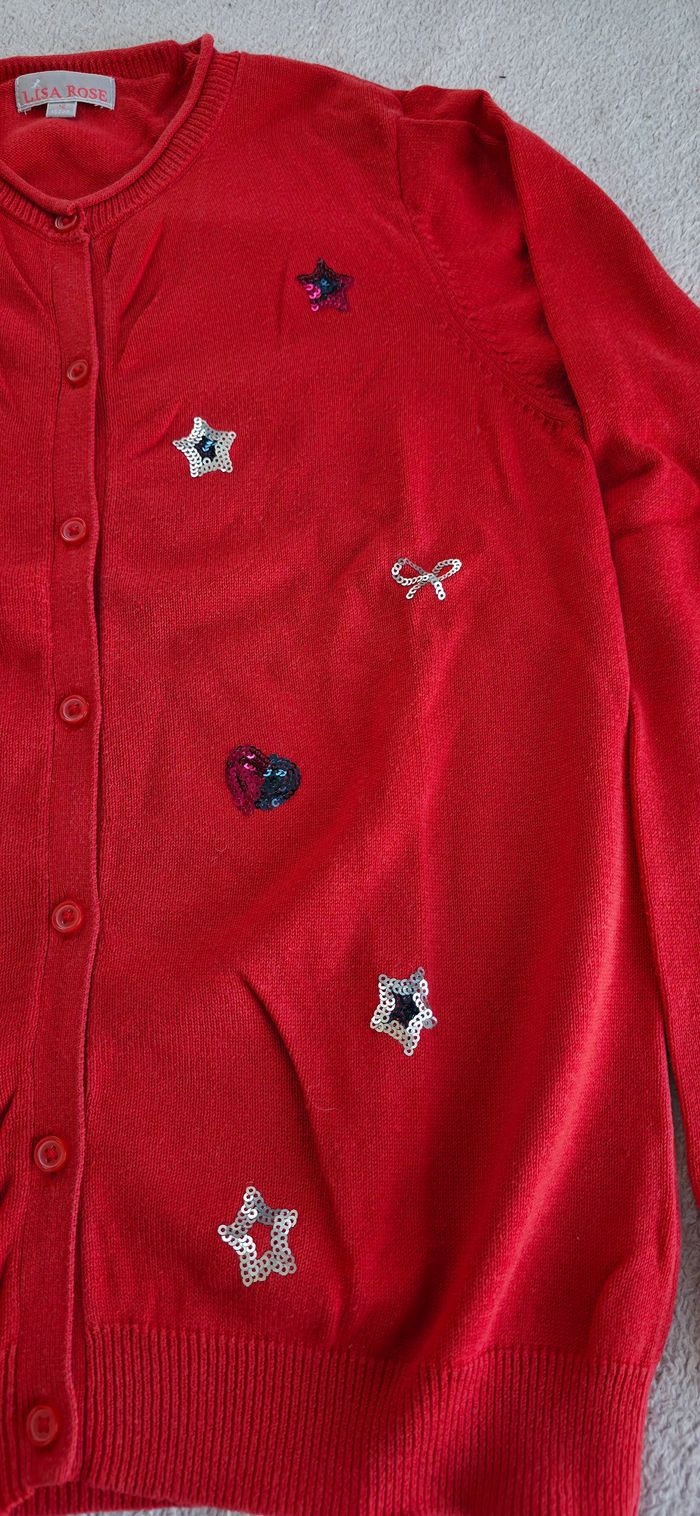 Gilet à motifs à séquins en très bon état. N'hésitez pas à me contacter si vous souhaitez plus de renseignements ou de photos !