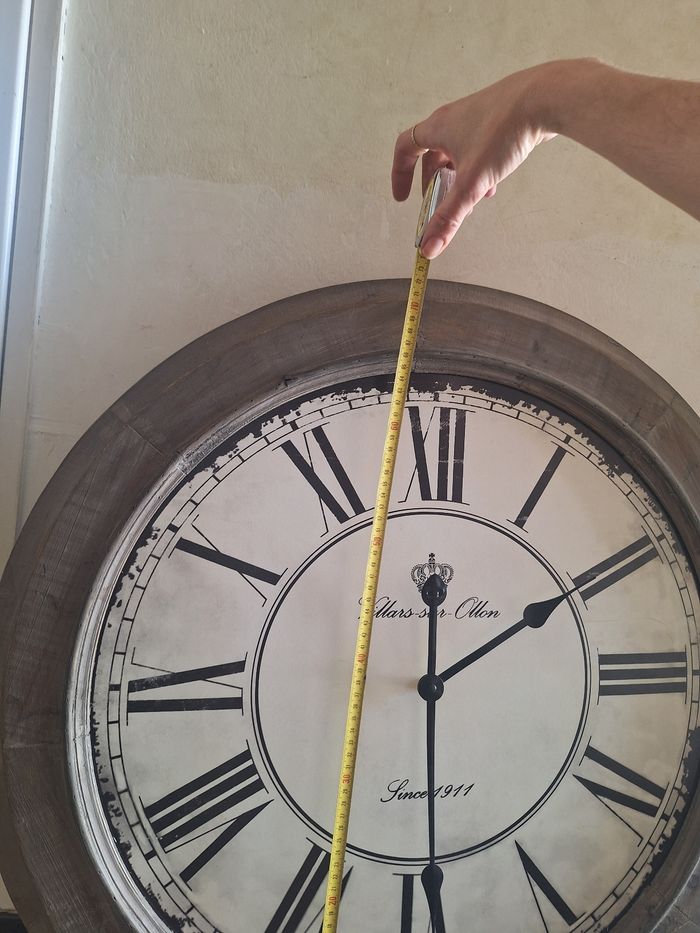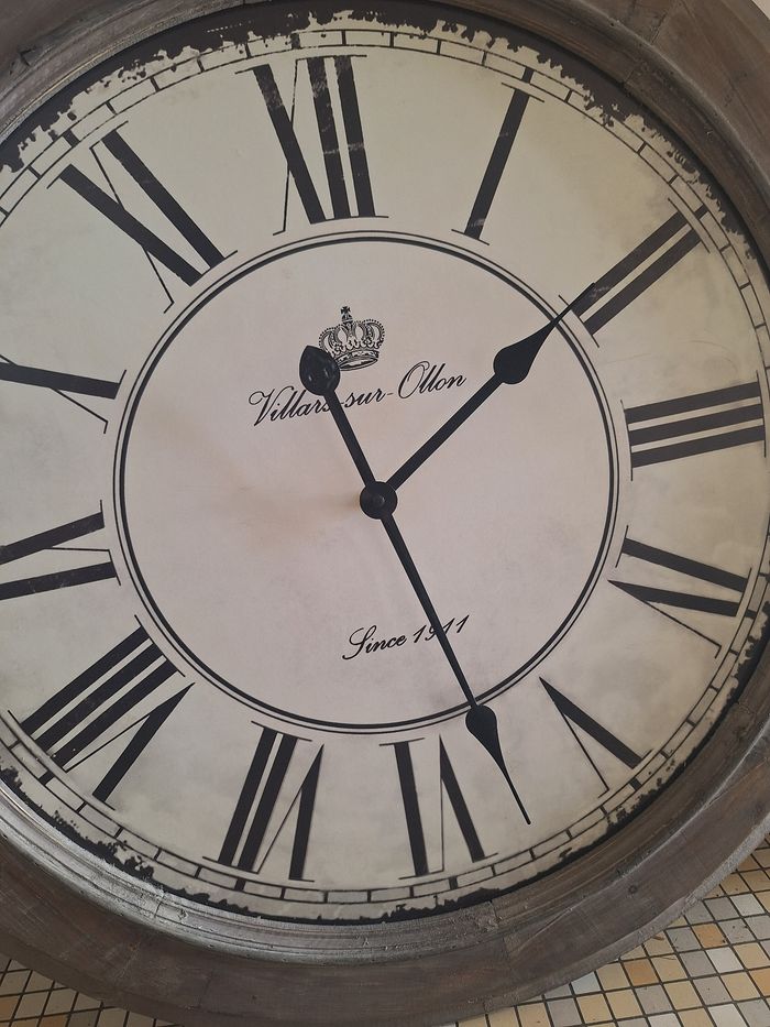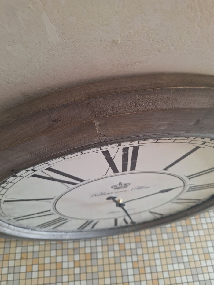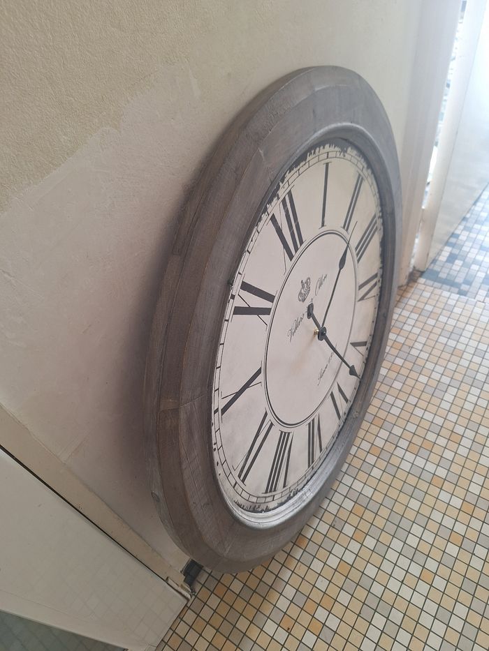 Grande horloge murale de 75 cm de diamètre, style vintage. Le mécanisme est tout neuf, je viens de le changer. Contour bois