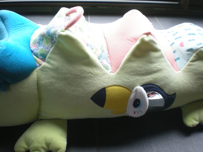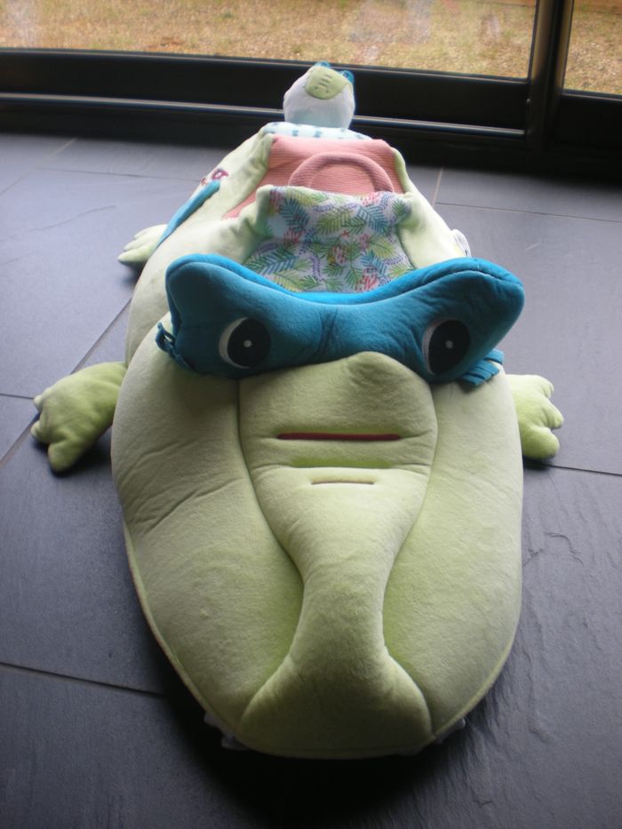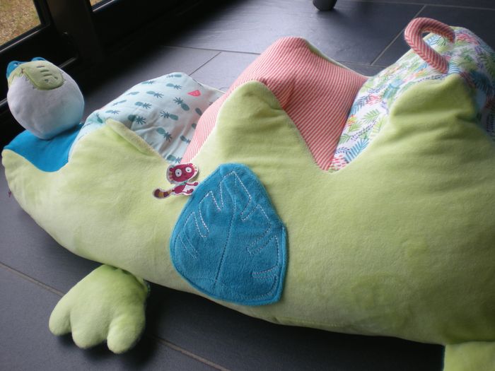 Range secrets Anatole le crocodile Lilliputiens Découvrez ce range secrets Anatole le crocodile de la marque Lilliputiens adapté dès la naissance. Cette grande peluche d'activités est idéal pour un formidable cadeau. A la fois superbe élément de décoration et véritable jeu d'éveil, il éveillera la curiosité de votre enfant et éveillera ses sens grâce à toutes les activités qu'il contient : sons grâce à la clochette et au bruit de papier, mais également toucher grâce aux diverses matières le constituant. Anatole peut également servir de coussin et développera les capacités de motricité fines de votre enfant. Notre adorable range secrets Anatole contient une clochette, un miroir, un bruit de papier et plein de cachettes pour y ranger ses affaires (ou ses secrets !). Ce grand crocodile tout doux stimule les sens et fait fondre les cœurs ! Il est en très bon état, juste légères traces sur le miroir.