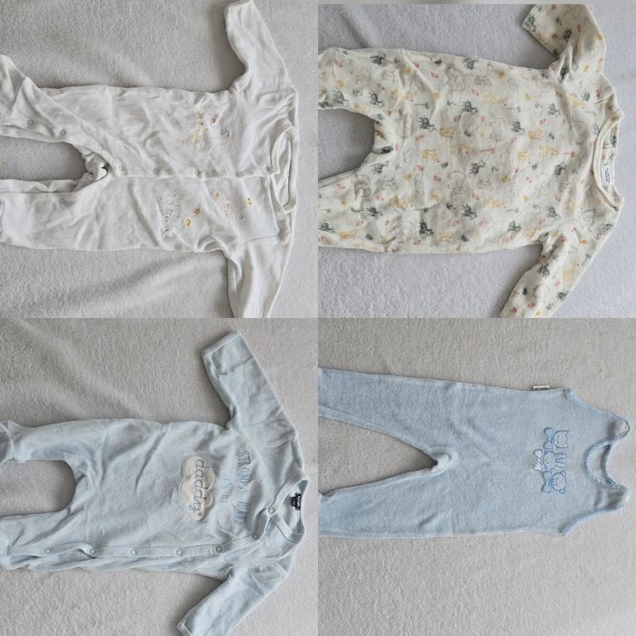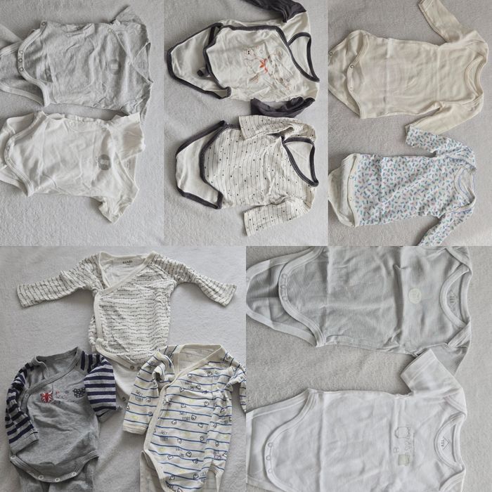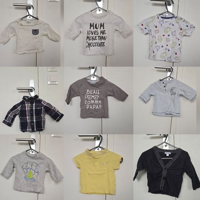 Lot de vêtements 3mois Contient : Bodies manches longues x7 Bodies manches courtes x4 Pyjamas x4 Tee-shirts manches longues x5 Tee-shirts manches courtes x2 Chemises x2 Gilets x2 Pantalons x3 Chaussettes x10 Chaussures x2 Gigoteuses x2 Casquette x1 Diverses marques, okaidi, vertbaudet, tape à l'œil, Kiabi, la halle, gemo, tex... Maison non fumeur