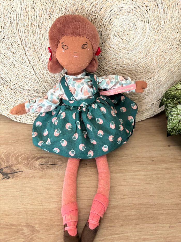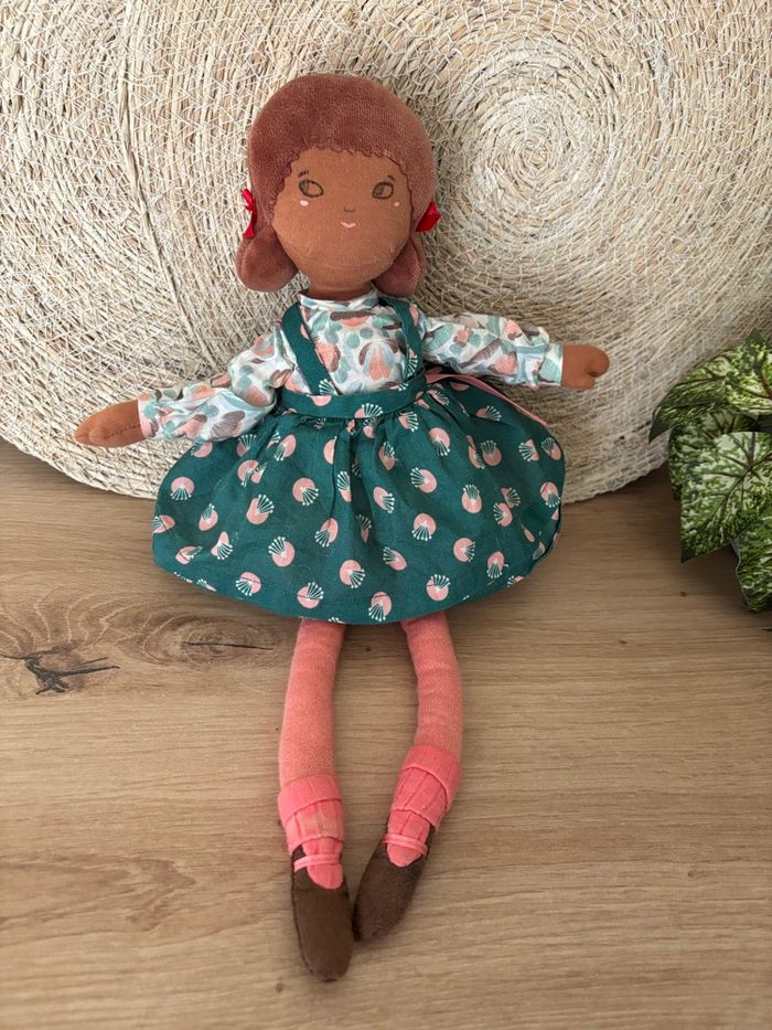 Doudou poupée chiffon robe vert rose les parisiennes moulin roty  - photo numéro 1