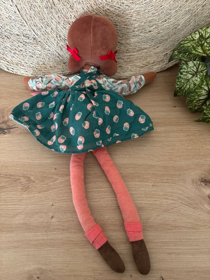 Doudou poupée chiffon robe vert rose les parisiennes moulin roty  - photo numéro 2