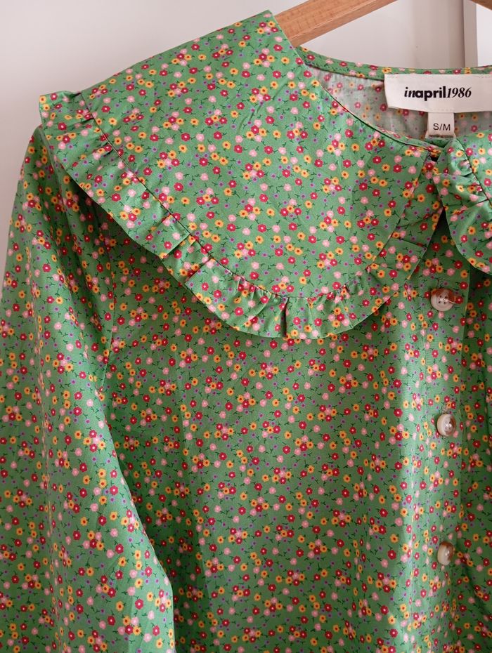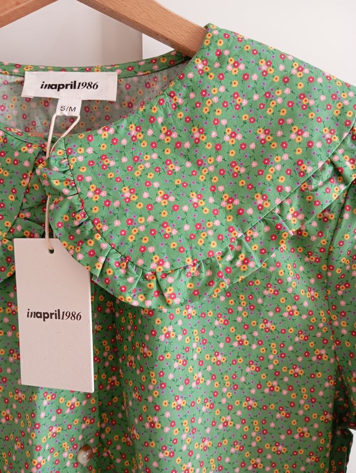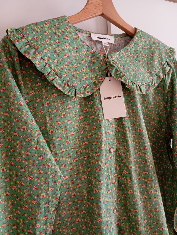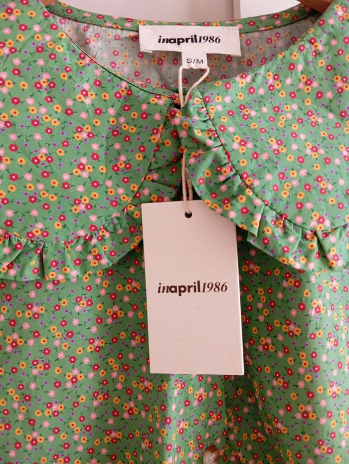 Très jolie chemise fleurie style vintage col claudine. Marque in april 1986 nouvelle collection printemps Neuf avec étiquette Taille S/M sa coupe correspond à la taille 36 et 38. Longueur dos 60 cm Longueur manche 60 Largeur aisselle à aisselle 48 Épaule à épaule 38