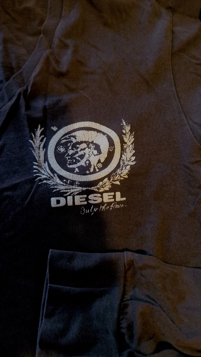T-shirt Diesel pas tout jeune, mais peu encore êtes-vous bien porté, un petit trou, tout petit au niveau de l'étiquette intérieure (photo jointe).