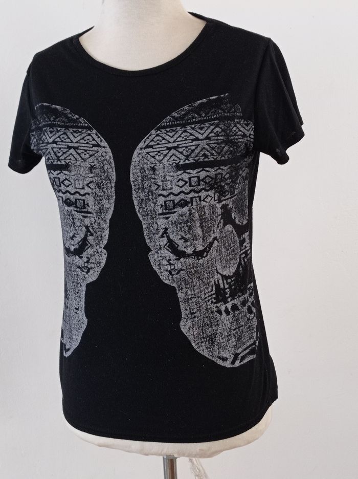 10 articles à 2€ =15€ tee shirt noir avec motif devant (tète de mort) belle matière largeur épaule40 largeur poitrine46 longueur total 60