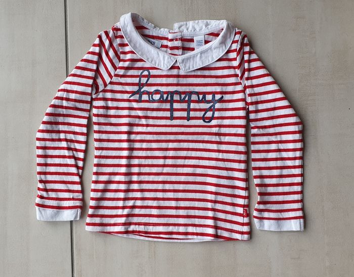 Tee shirt rayé rouge "happy" Taille2 ans Neuf