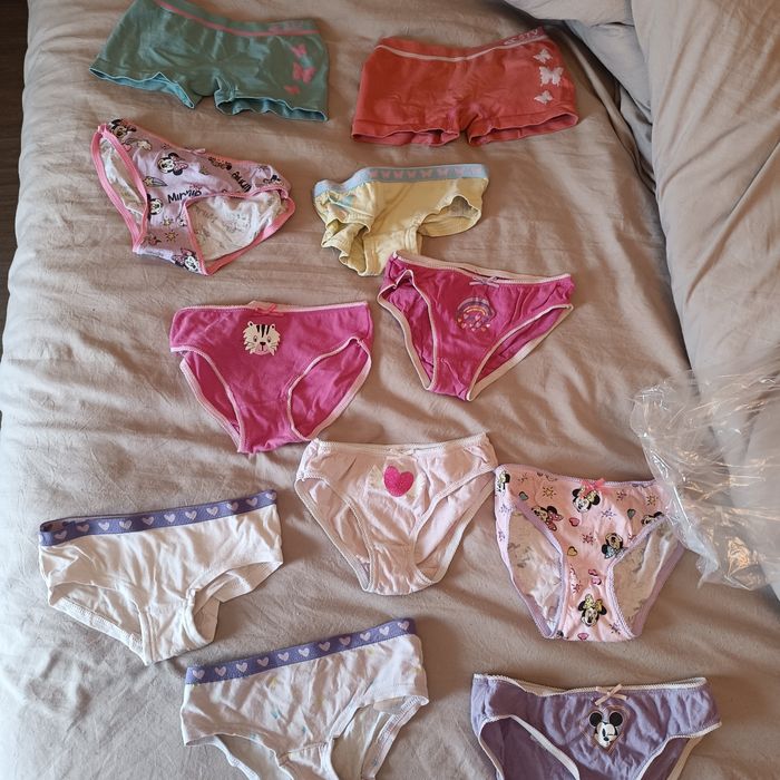 Lot de slips et shortys,shorty en taille 2 4 ans, les autres slips sont en taille 110 116 cm. Un slip qui se découd sur le cotē voir photos Légère taches sur quelques slips voir photos, je peux bien-sûr les retirēs si besoin.