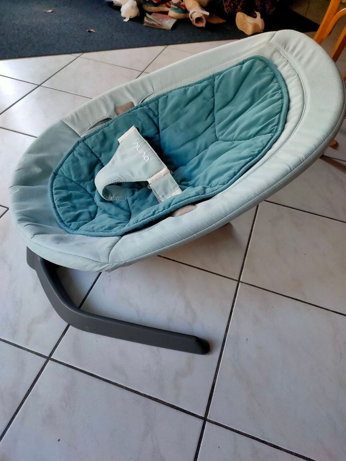 Transat Nuna leaf coloris bleu et bleu canard, balancement naturel. Il a été utilisé par un bébé en version transat unique. Il est en très bon état. Attention dimensions ne sont pas compatible avec Mondial Relay, choisir Shop2shop ou relais Colis. Le transat sera envoyé démonté. Le colis est lourd ! Prix ferme, PAS DE NÉGO !!!