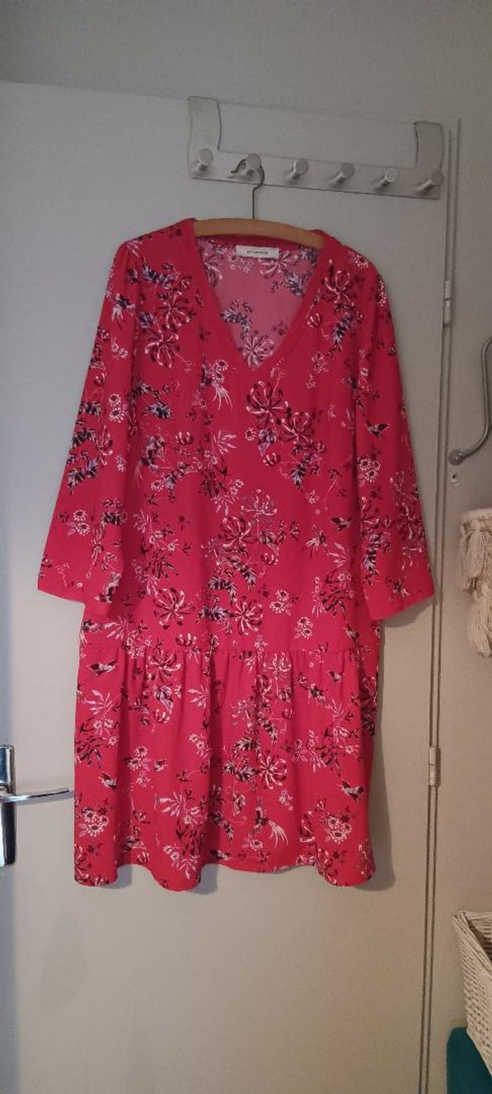 Cette robe fleurie, couleur Fushia, taille très bien et est très agréables à porter. Elle est en crêpe, a un maintien parfait et ne se froisse pas du tout, même après lavage, ce qui est très pratique.