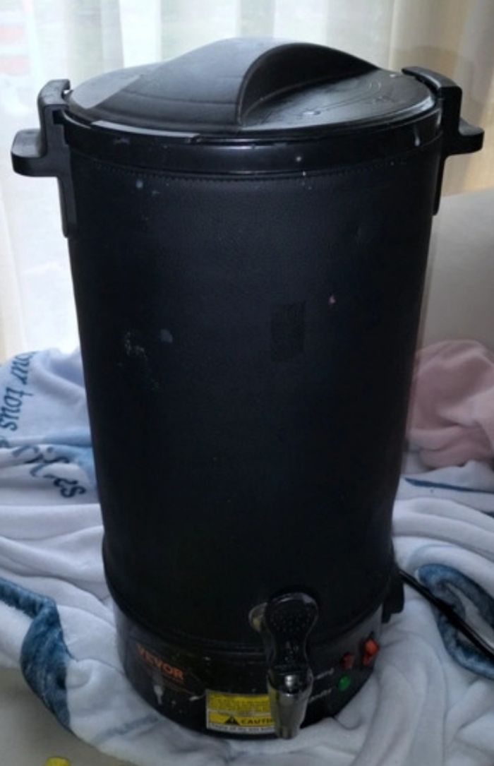 Très bon état servi quelques mois, tâche à l'intérieur du bac dû à la fonte de la cire fonctionne très bien marque vevor 10L