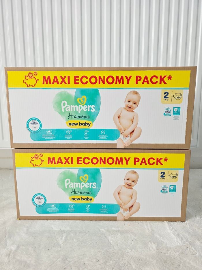 2× Couches Pampers Harmonie Taille 2 MAXI PACK ×208