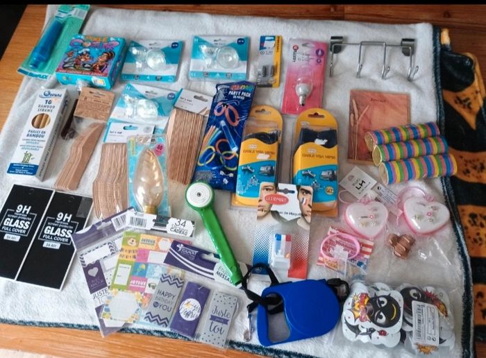 Lot 31 pièces complet d’articles neufs idéal pour revente (brocante, marché, boutique, etc.). 🛍️ Contient notamment : 1 lance d'arrosage 1 petite poêle coeur 1 paquet de paille en bambou réutilisable avec goupillon 2 paquets de verre trempé SA A51 3 paquets étiquettes cadeaux 1 douchette 1 laisse 1 crayon maquillage 3 en 1 France 5 paquets d ampoules 1 paquet de 2 embout tournevis 2 câbles VGA 15pin 1 carte 1 paquet de serpentin 1 pince 1 bracelet 1 paquet de bombes de confettis 1 paquet de bracelets et lunettes fluo 2 paquets de 20 couteaux en bois réutilisable 1 paquet de 8 couteaux en bois réutilisable 2 boîte de bague enfants réglable manque 1 dans chaque acheter comme sa a la halle 1 accroche serviettes (mal stocker peinture un peu partie bon état ) ✨ Idéal pour démarrer ou compléter un stock ✨ Bonne marge possible à la revente pour quelqu'un qui a le temps de s en occuper ✨ Lot varié et tendance