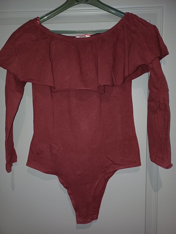 Très joli body avec des manches neuf de couleur marron. La marque est JENNIFER et la taille L. S'attache avec deux pressions entrejambe. Voir la photo ci jointe.