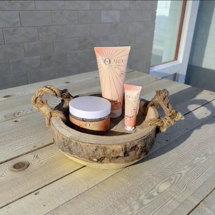 Lot de 3 produits de la marque Solaria Adopt. - 1 Lait corps hydratant Solaria, 200 ml, neuf, hydrate et parfume delicatement la peau. - 1 Gommage corps au sucre Solaria, 250 ml, neuf, exfolie le corps pour laisser une peau douce. - 1 Crème mains et ongles hydratante Solaria, 30 ml, neuf, hydrate vos mains et ongles pour laisser votre peau douce et souple.