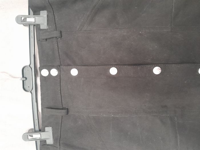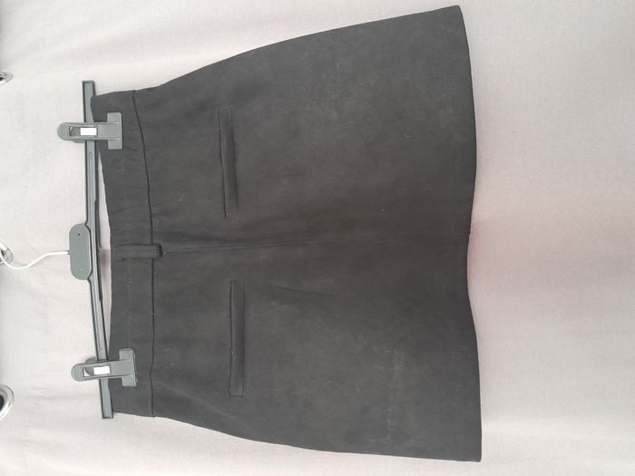 Jupe, touché velours, élastique à la taille, 2 poche, attache bouton devant Longueur : 37cm Taille en cm : 33 Matière : 92 % Polyester, 8 % Elasthanne Marque : Bershka