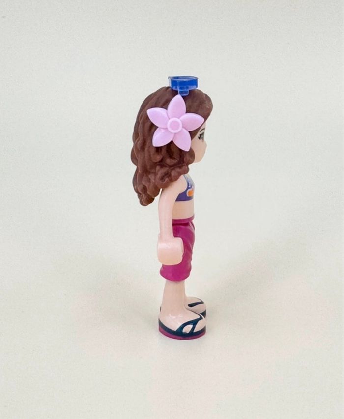 Bonjour, J’essaye de mettre un peu d’ordre dans ma collection Lego. Et je souhaite maintenant attirer votre attention sur les « mini et micro dolls » ou figurines Friends, en vous présentant chacune d’elle dans différentes occasions (et selon les sets d’origine). Ici, Olivia s’apprête à profiter de la piscine gonflable de son jardin en paréo rose fushia et haut de maillot de bain.. Elle ne manque pas de coquetterie avec sa fleur dans les cheveux et ses lunettes de soleil violette 😄. Pièces comme neuves et garanties 100% de la marque Lego. Envoi soigné et protégé.