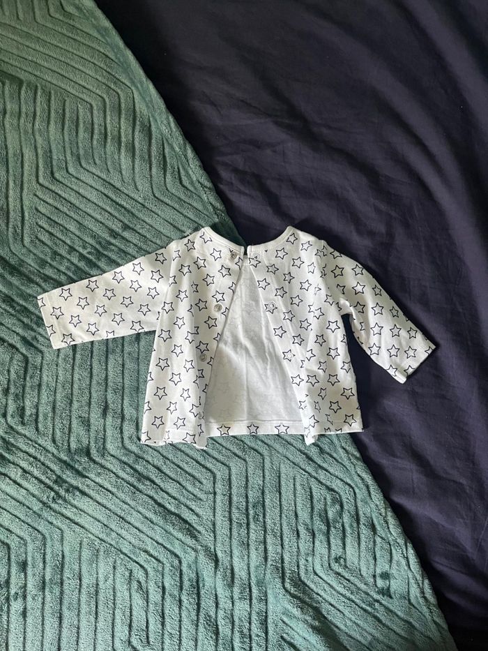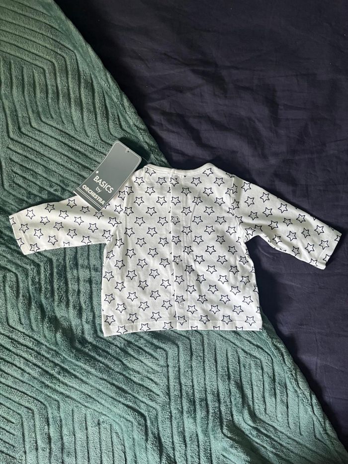Tee-shirt à manche longue pour bébé fille de ≈3 mois (peut convenir pour un garçon) bouttoné sur le devant avec de jolies étoiles noir ⭐. Neuf avec étiquette jamais porté et pratique au quotidien. Sur l'imagine il n'est pas repasser mais il n'y a aucun plie et aucun défaut Les hashtags : #Orchestra #OrchestraBebe #TshirtBebe / #Bebe / #VetementBebe /#BebeFille #ManchesLongues / #NeufAvecEtiquette / #NEUF #ModeBebe / #EtoilesNoir /#PetitPrix #3Mois / #56cmbebe / #56cmfille