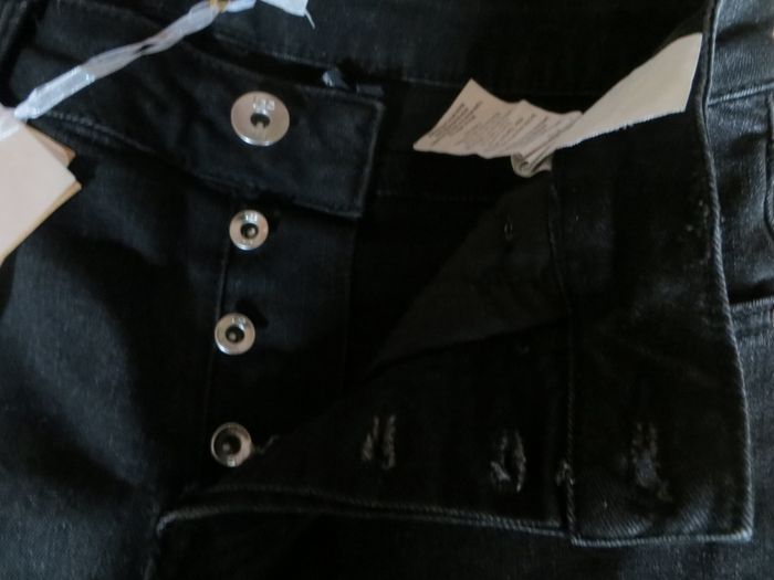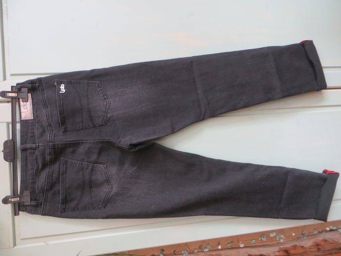 Un basic à avoir dans son dressing : jean noir de la marque française les petites bombes/lpb Une coupe droite avec fermeture boutons, modèle kate, Coton, polyester, viscose et un peu d’élasthanne Taille 36 Dimensions : Longueur environ 98cm largeur environ 35 cm détail mode : peut se porter retrousser avec le liseré rouge apparent. Neuf étiqueté (valeur 59€)