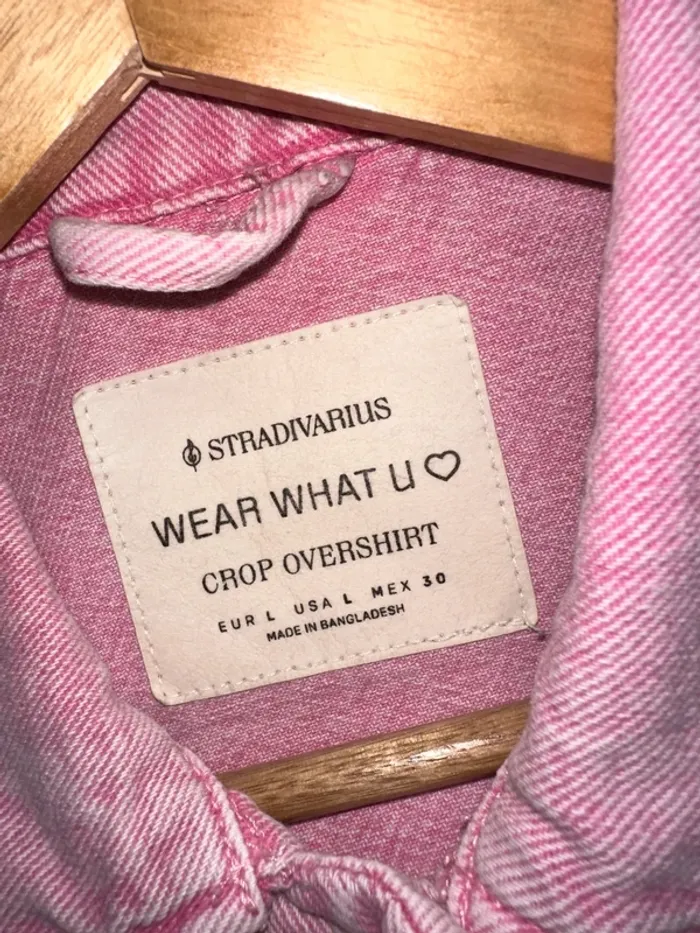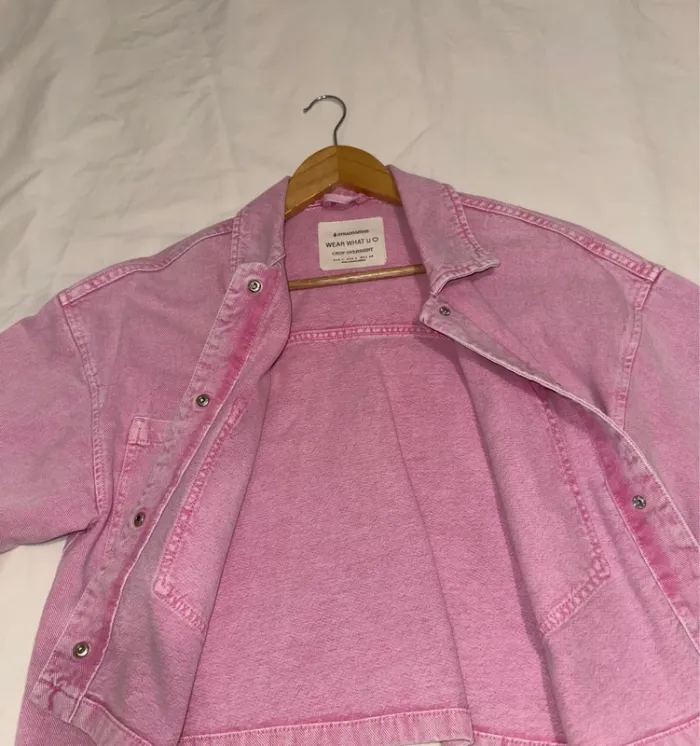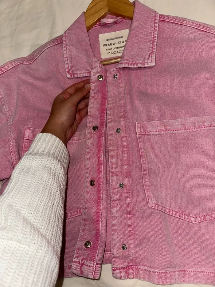 Veste crop top en jean Stradivarius – Rose – Taille L Taille : L Couleur : Rose Coupe : Ample État : en parfait état, comme neuf, portée 1 fois seulement