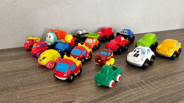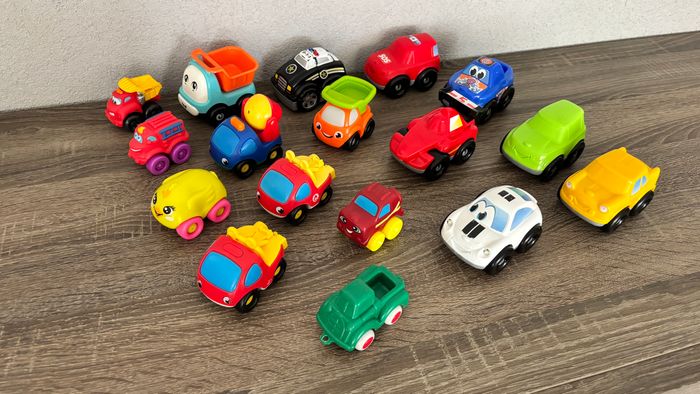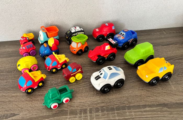 Lot de Véhicules Voitures camion benne camion toupie Petits camions Tonka Hasbro, playskool Smoby Voiture de police 911 Méga Bloks jouet d’occasion en bon état avec quelques traces d'usures et peinture enlevée voir TOUTES les photos